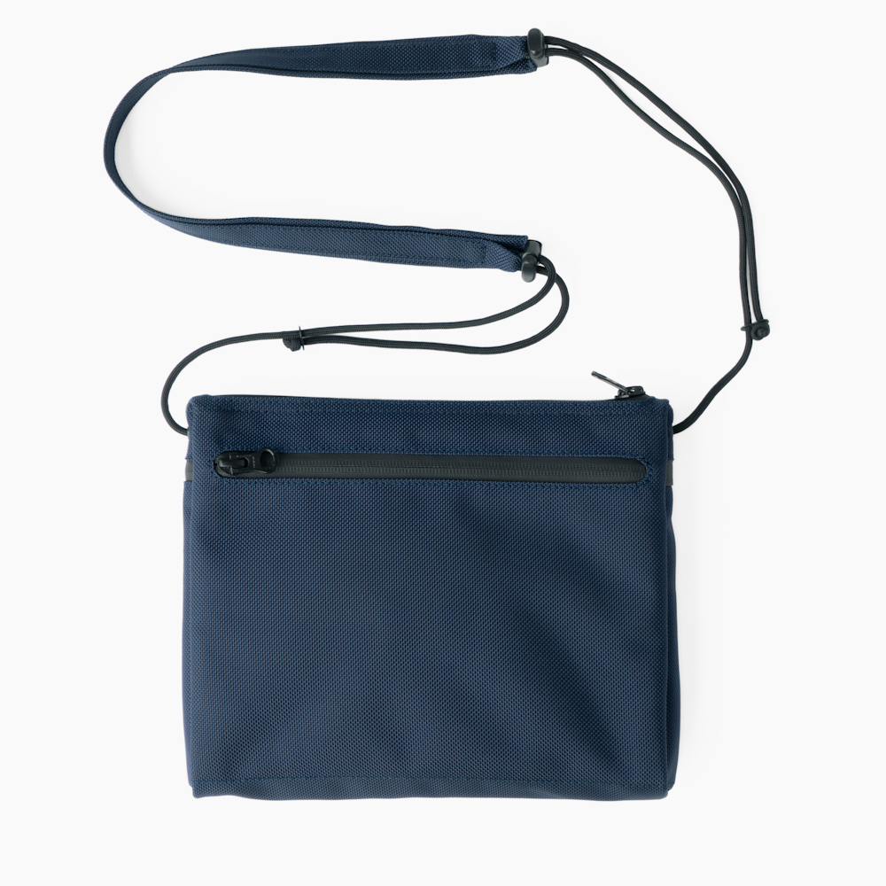 Small multi-pocket crossbody bag. “Bracket” shaped gusset reinforced by a bound interior front edge. 3 zip pockets with a fully “lined” main body. Adjustable shoulder strap with fixed cord locks.