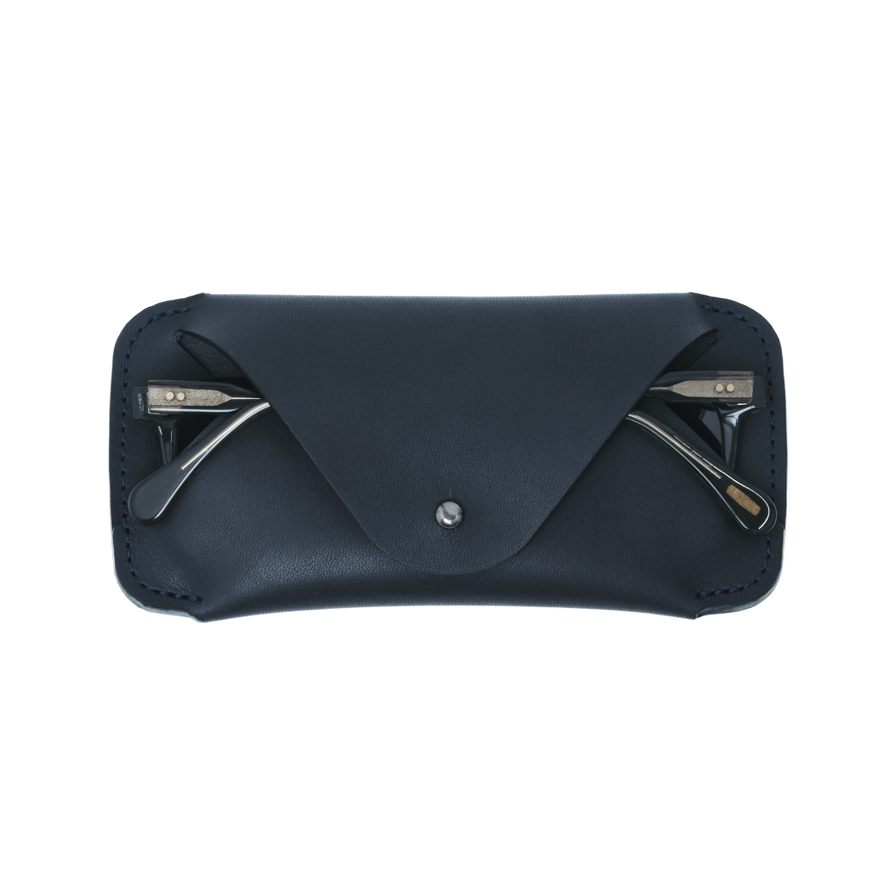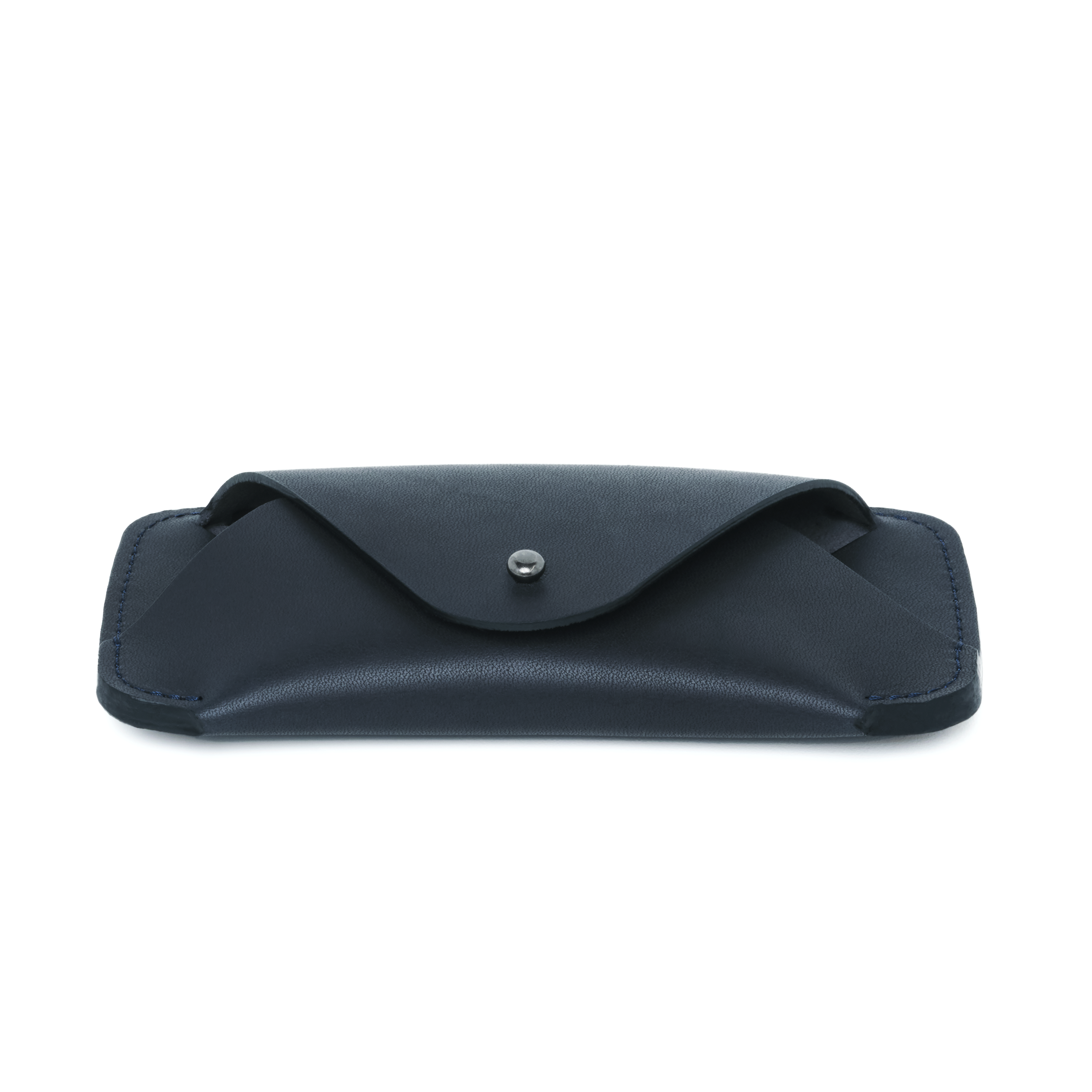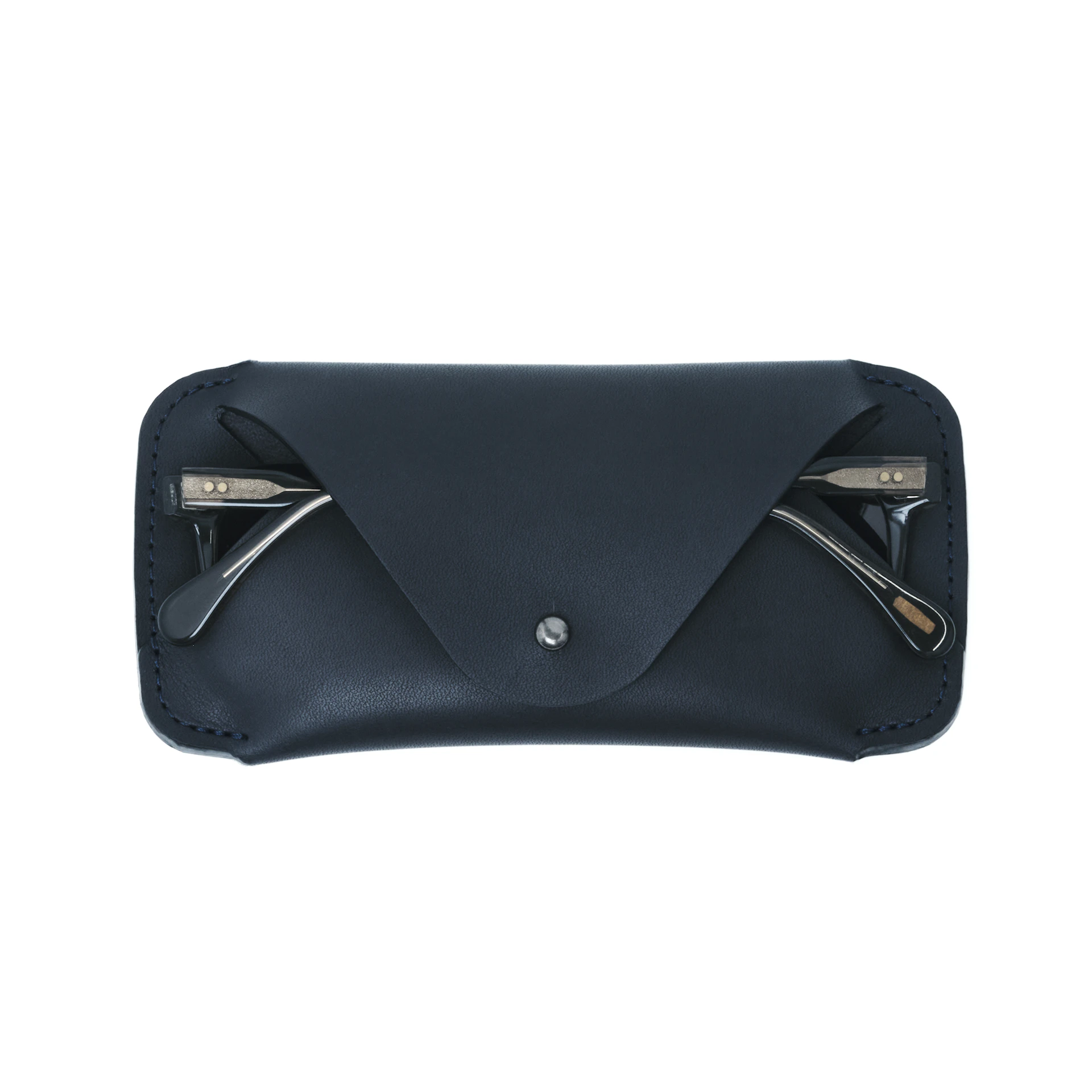 Updated form and construction to accommodate more eyewear frames. Projected top with button stud closure. Edge sewn "wrap" style eyewear sleeve. May have cosmetic blemishes. Limited quantity. All sales final.