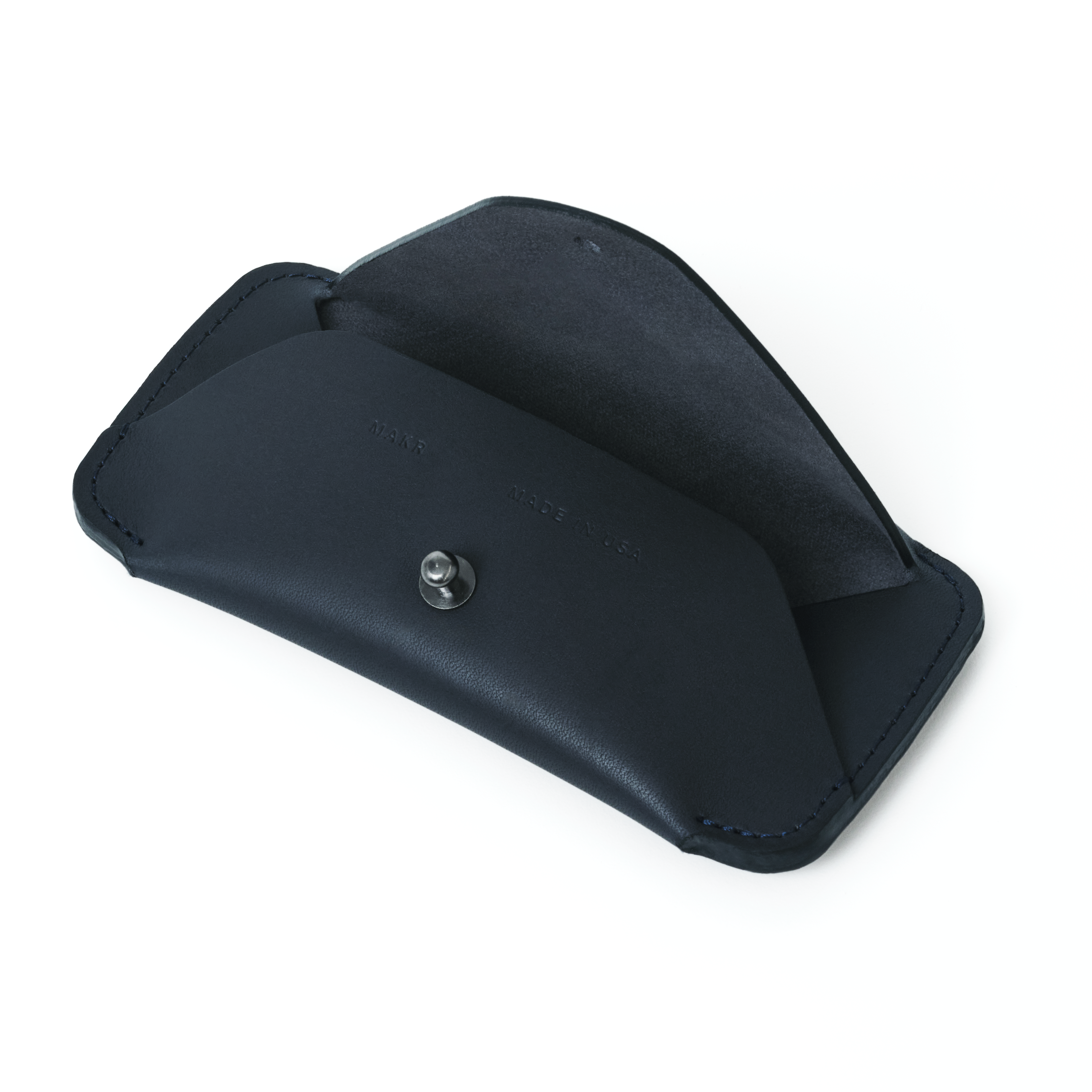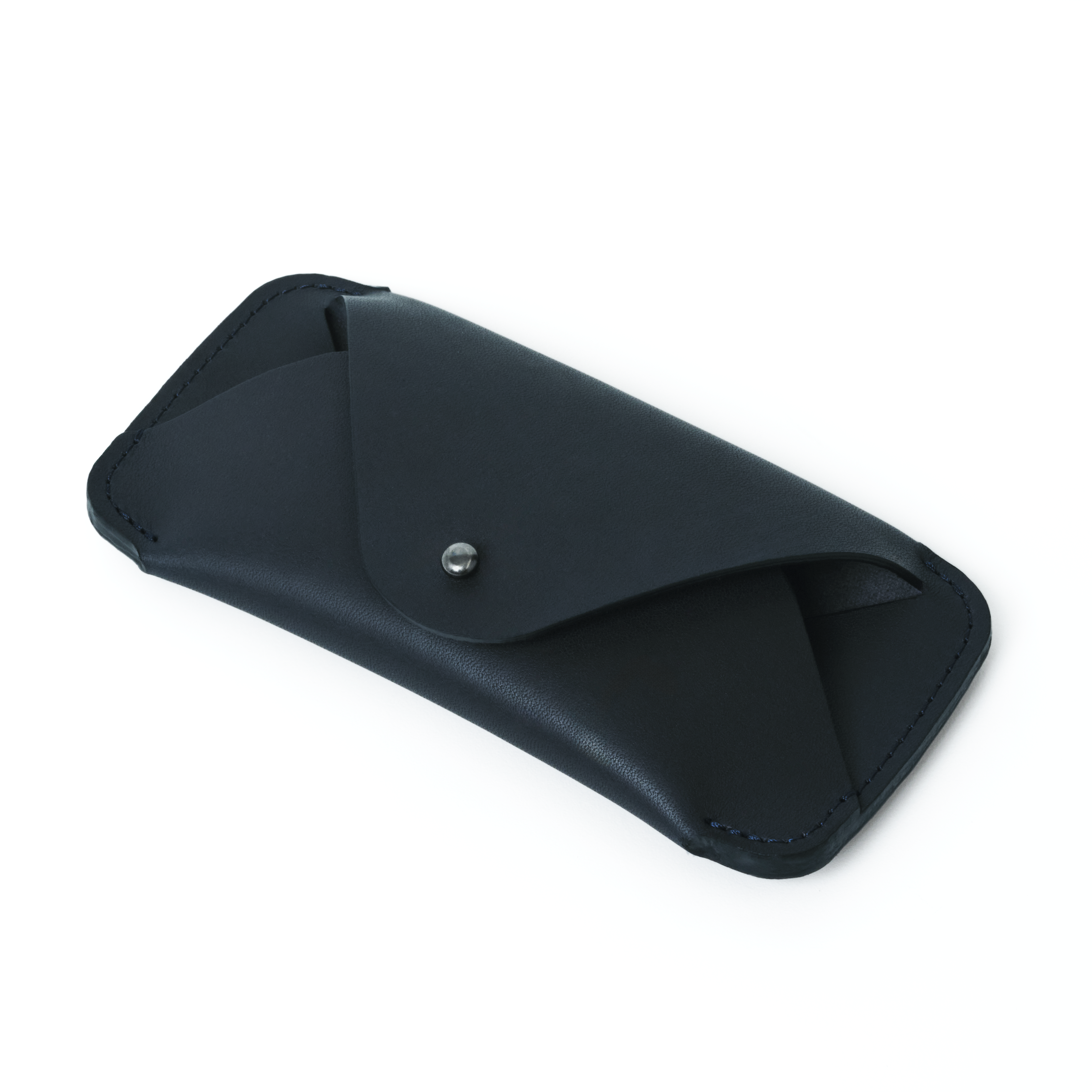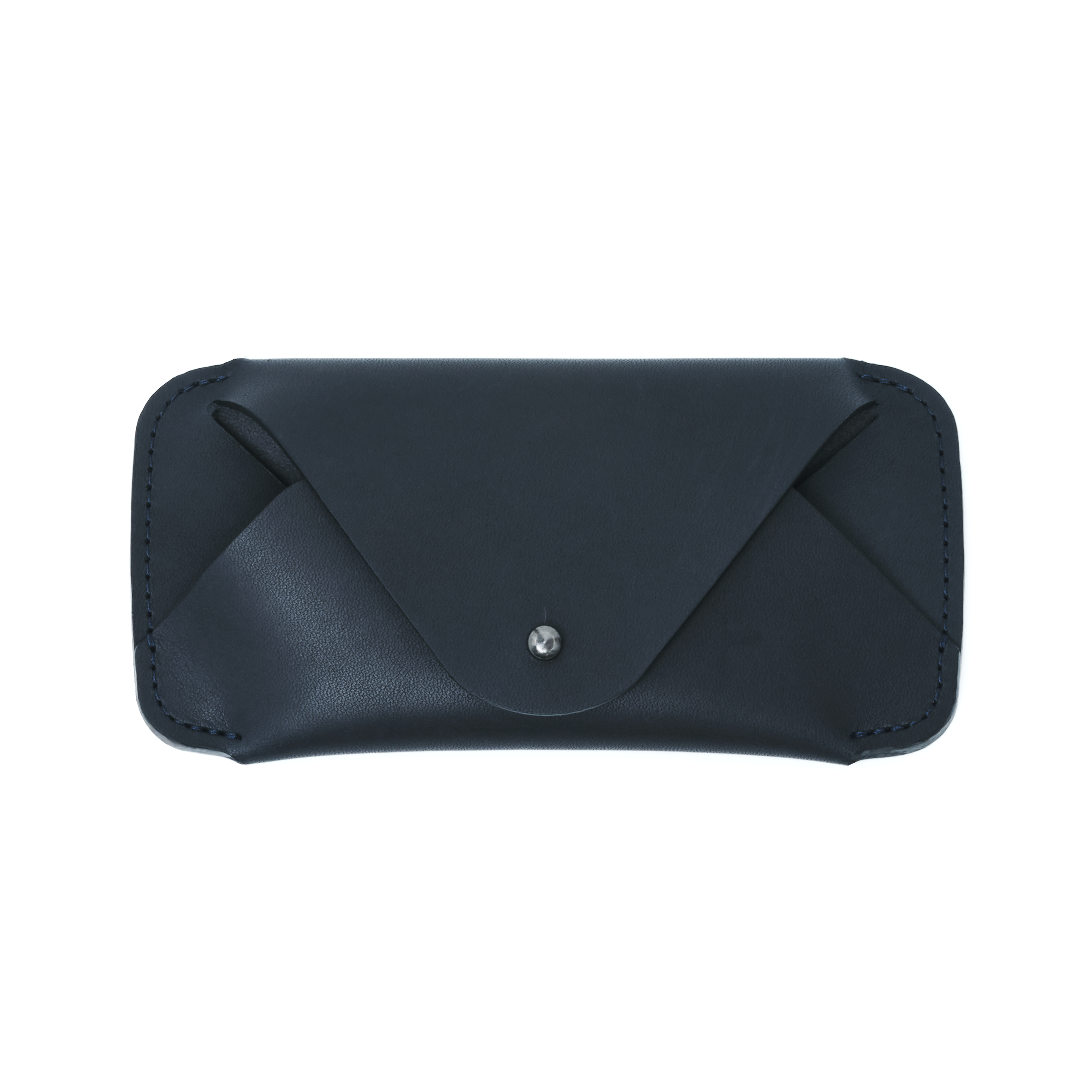 Updated form and construction to accommodate more eyewear frames. Projected top with button stud closure. Edge sewn "wrap" style eyewear sleeve. May have cosmetic blemishes. Limited quantity. All sales final.