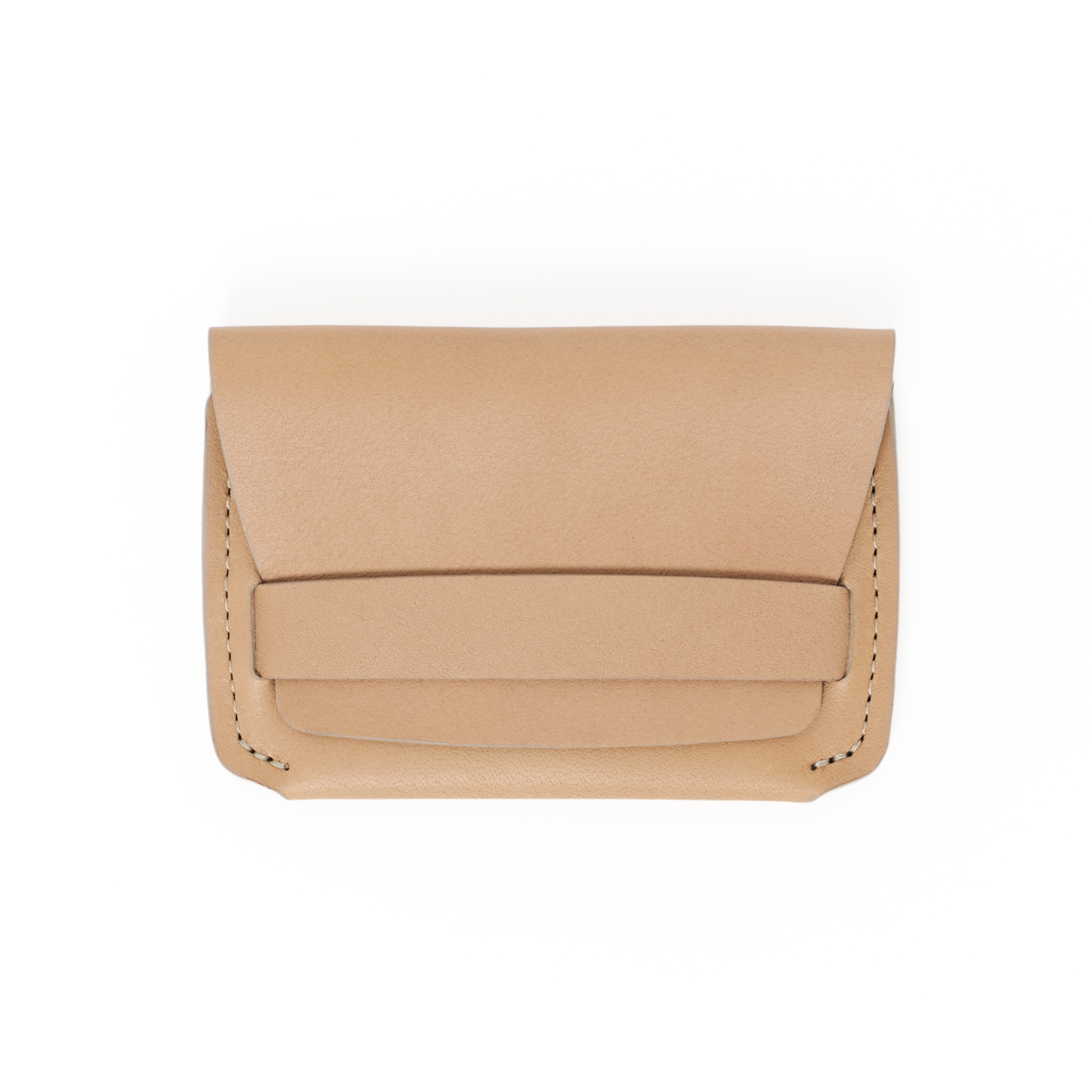 Flap closure wallet with integrated keeper. Two interior pockets with one full coverage exterior pocket. Slightly flared sides and tapered flap to create visual harmony.