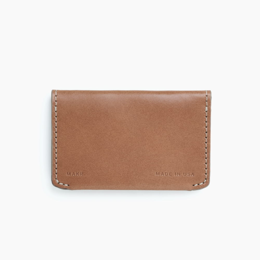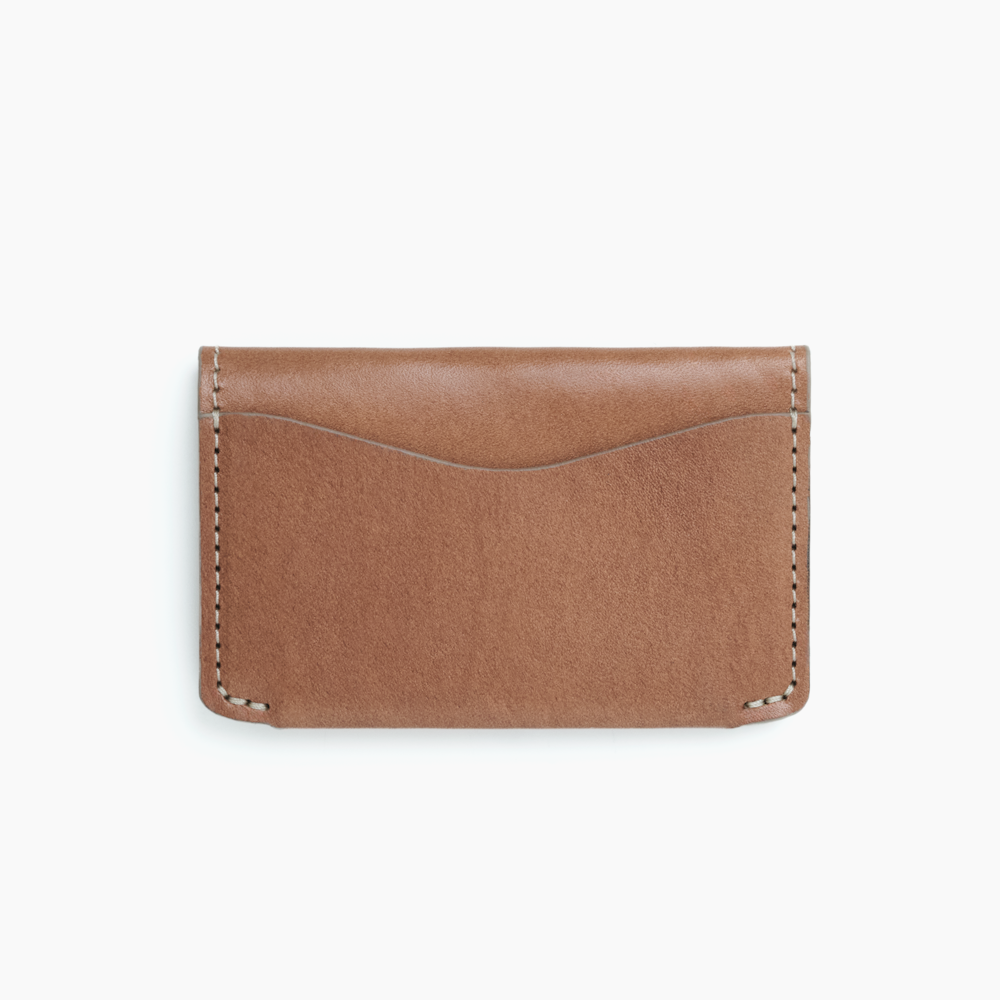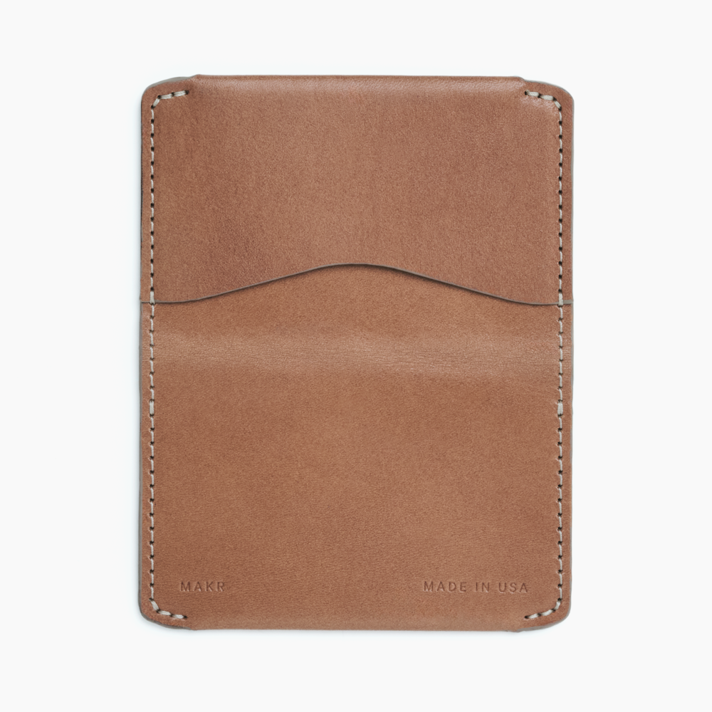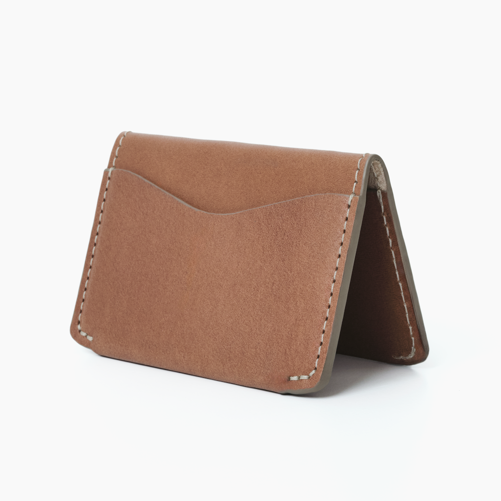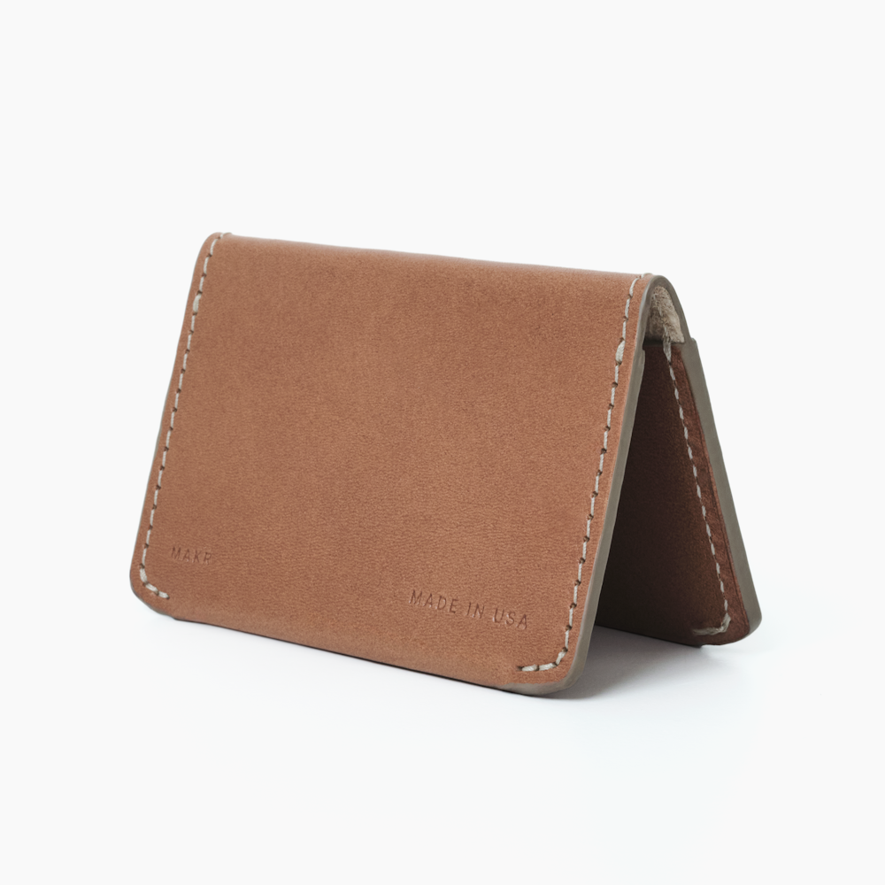 Updated form with contour refinements and a new fold-to base. Two interior pockets and one exterior pocket. Accommodates 5-6 cards or double folded cash in each pocket.