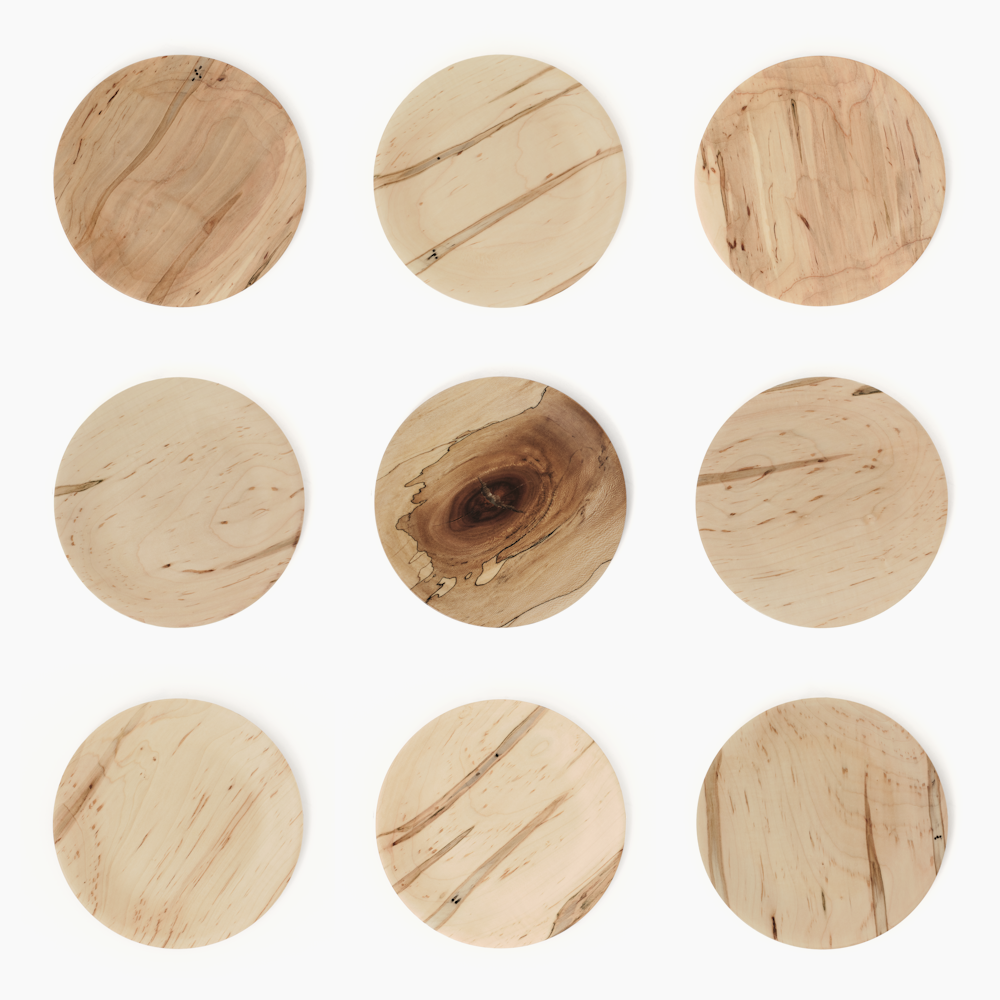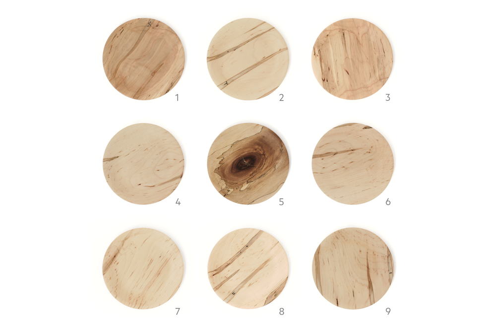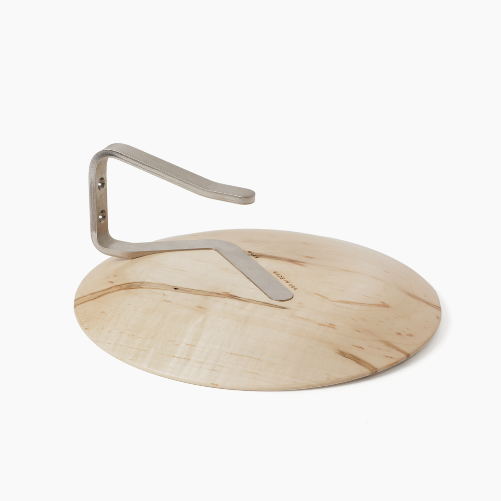 Our version of a wall mounted "valet" tray. CNC milled "yard-felled" Spalted Maple with stainless steel hook. Hook shape developed to provide lateral strength and efficient nesting during the laser cutting process. Select your plate using the NUMBERED KEY below.