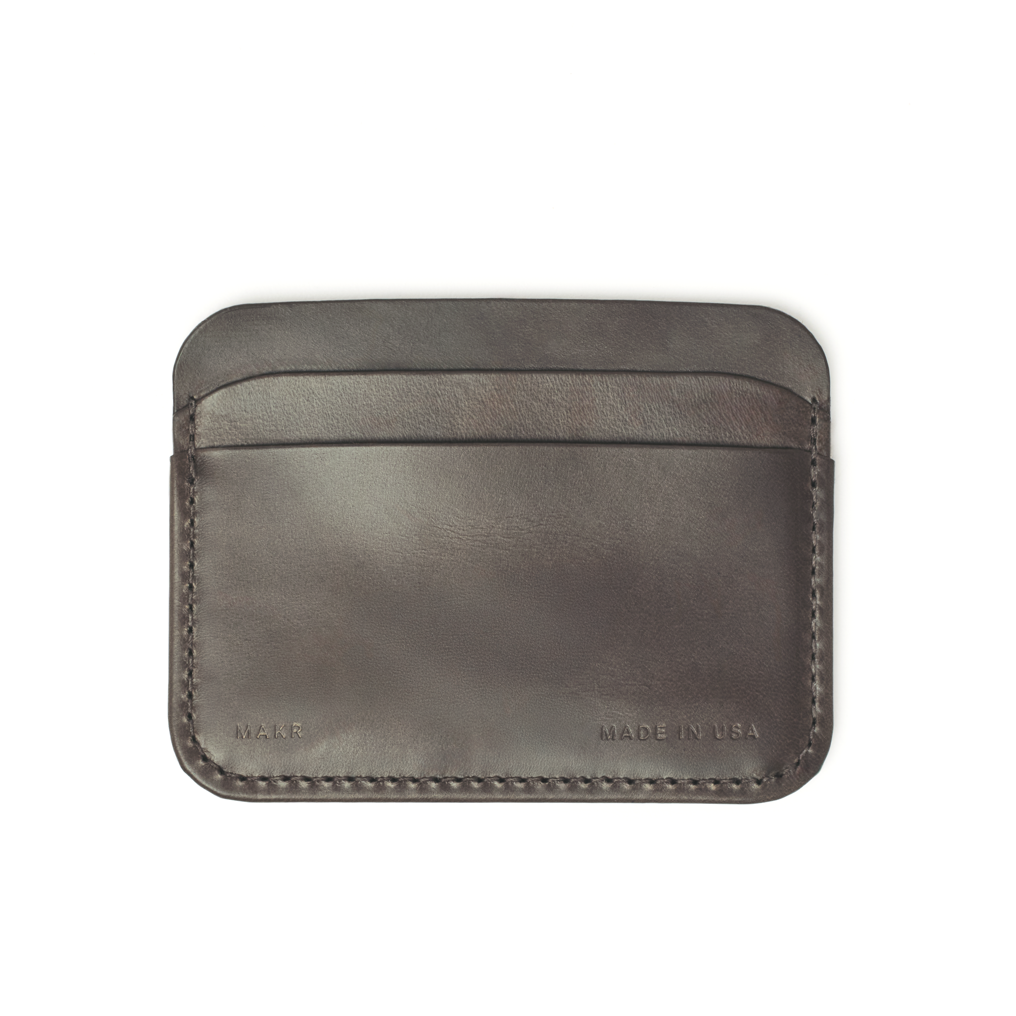 Five pockets, center pocket intended to conceal single folded cash. Exterior pockets can accommodate 6+ cards. Made in a beautiful new slightly-green gunmetal finish. May have cosmetic blemishes. Limited quantity. All sales final.