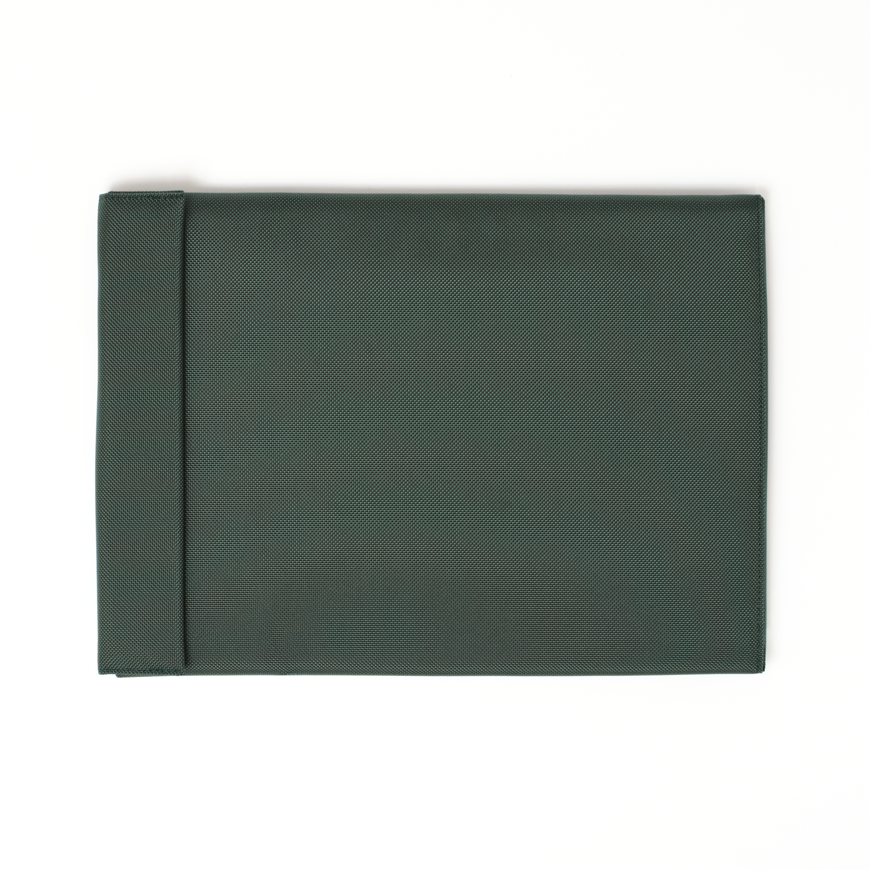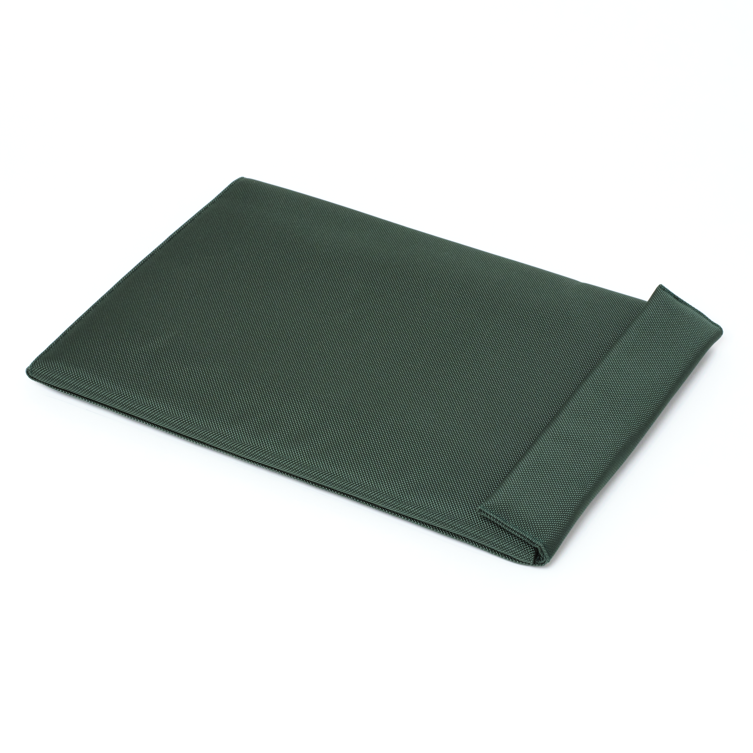 Padded device case with unique wrap construction. Intersecting bottom corner achieved by complex patterning and custom equipment. Fully lined with tapered wrap that allows for a secure hold of a variety of devices. Intended for use with MacBook 15" and 16".